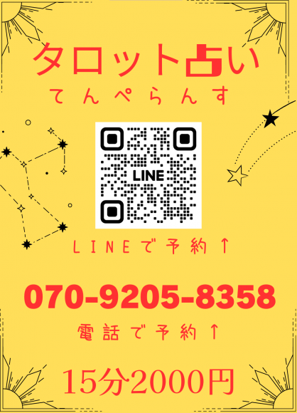 いつでもLINE公式でも予約できます!粕屋町に位置する、初めての方にも、おすすめのタロット占い専門サロンです。タロットは怖いと思われる方が多いですが、丁寧に鑑定結果をお伝えするのでご安心ください。