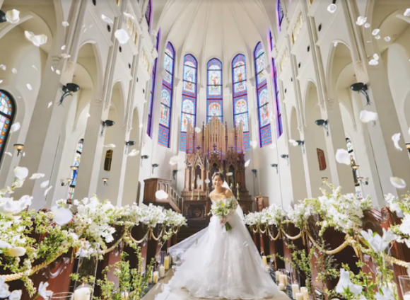 【ノートルダム北九州】は、訪れた瞬間に日常を忘れさせてくれるリゾート空間が広がる結婚式場です。 壮大なチャペルは、荘厳な雰囲気を湛え、新郎新婦の愛の誓いを感動的に彩る特別な空間です。
